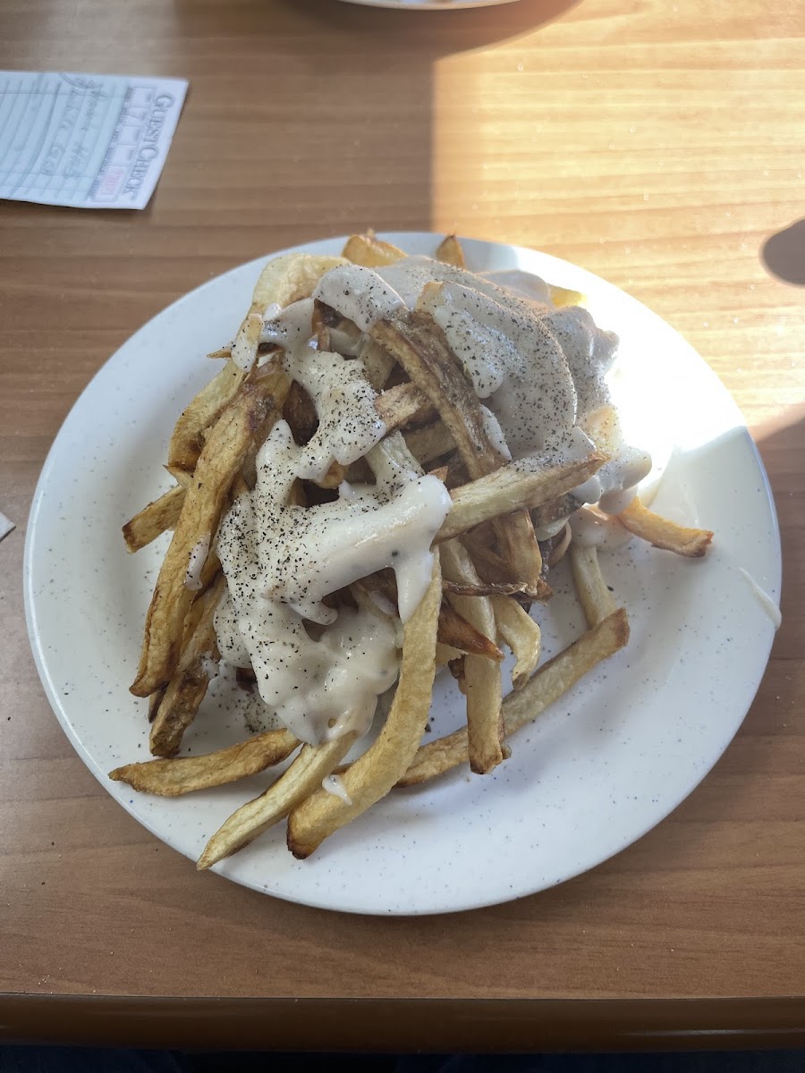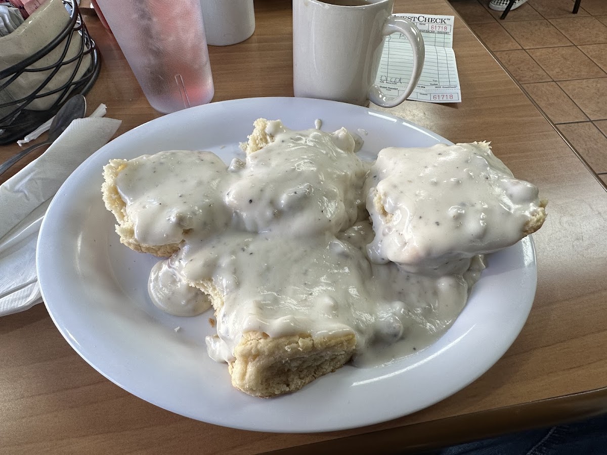 Fresh made biscuit fluffy and tender eggs digest right home fries very tasty. Sausage with seasoned very well. The peas tasted good. Service was very good no weight plenty of parking. If you’re in the area, it’s worth the stuff.